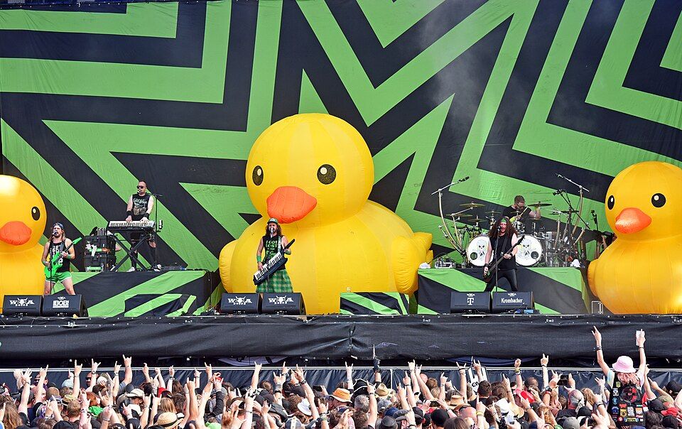 The band has also released two live albums and six EPs. The lead vocalist Christopher Bowes provides the announcer voice for the Pirate team in the video game Pirates, Vikings and Knights II.