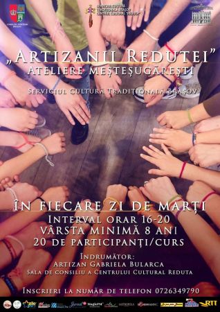 Atelierele de împletituri din fire naturale, cusături, croșetat și tricotat vor avea loc în fiecare marți, începând cu orele 16.00 și sunt susținute de artizan Gabriela Bularca.