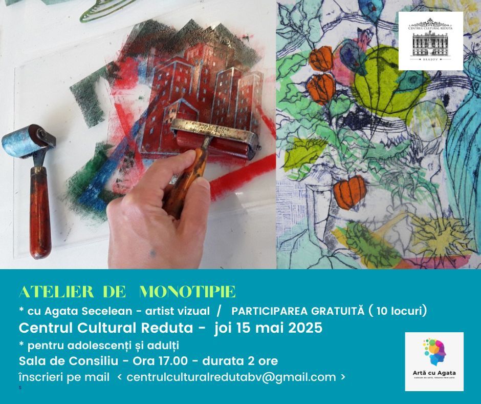 Centrul Cultural „Reduta” a dat startul înscrierilor pentru un nou atelier de monotipie, coordonat de artistul vizual Agata Secelean. Vă invităm la o sesiune originală de învățare a ceea ce înseamnă monotipia, noi metode pe care le puteți folosi ca începători și cum să integrați într-o lucrare de artă această tehnică de printare manuală. Participanții află și cum se transferă pe hârtie compoziția realizată cu tehnica monotipiei.