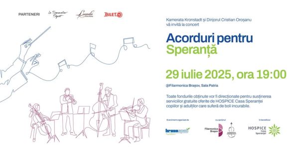 Kamerata Kronstadt vă va purta prin armonii care mângâie sufletul, iar toate fondurile obținute din vânzarea biletelor vor fi direcționate pentru susținerea serviciilor gratuite oferite de HOSPICE Casa Speranței.