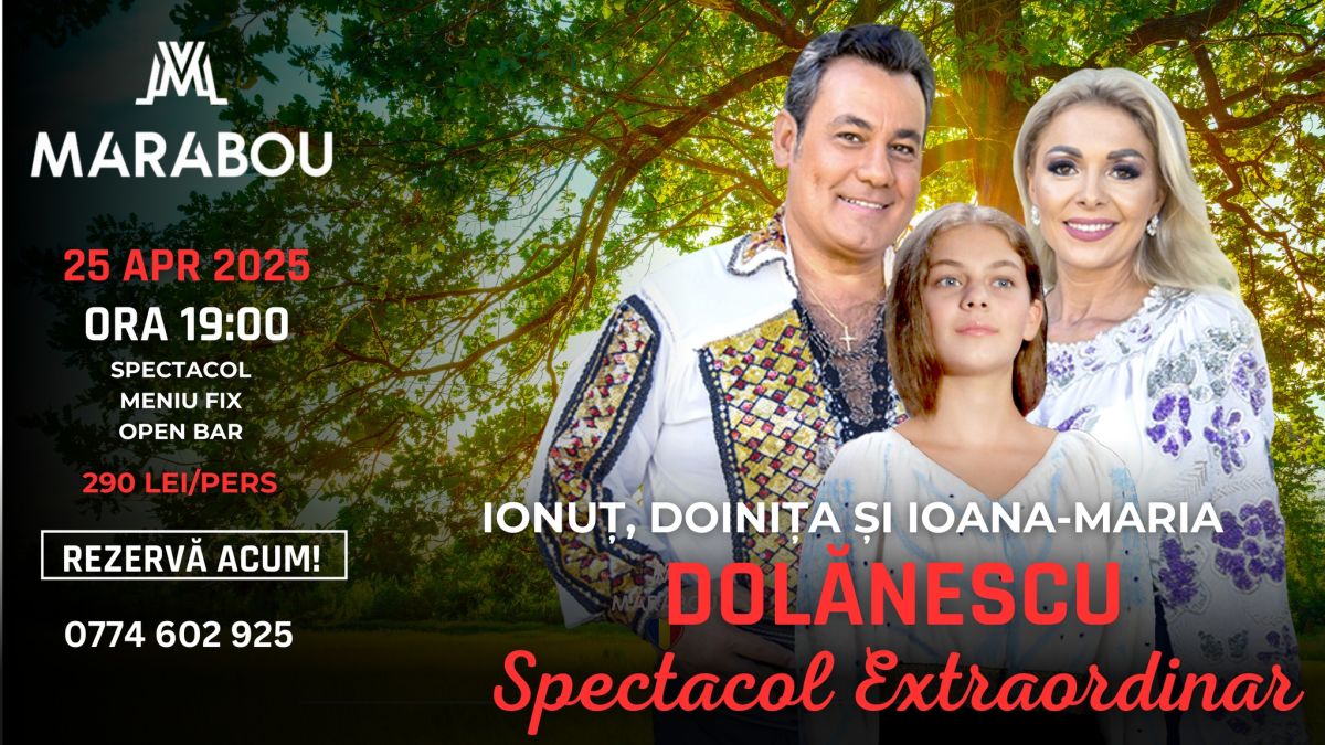 Vineri, 25 Aprilie, de la ora 19:00, vă invităm la un spectacol extraordinar susținut de Ionuț, Doinița și Ioana-Maria Dolănescu! O seară plină de emoție, muzică de suflet și o experiență culinară deosebită.