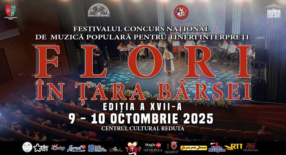 Festivalul Concurs Național de Muzică Populară pentru Tineri Interpreți Flori în Țara Bârsei, ajuns la ediția a XVII-a, se va desfășura în perioada 9 – 10 octombrie 2025 la Centrul Cultural „Redutaˮ Brașov.
