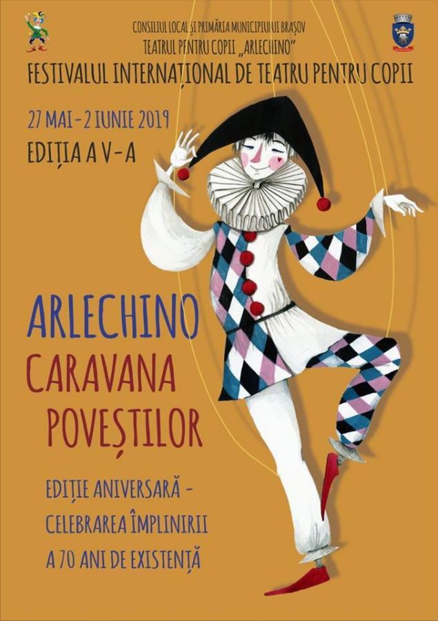 Teatrul Arlechino Braşov are bucuria de a vă invita la ediţia a V-a a Festivalului Internaţional de Teatru pentru Copii "ARLECHINO - CARAVANA POVEŞTILOR", care va avea loc în perioada 27 mai - 2 iunie 2019.