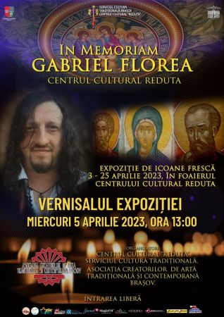 Centrul Cultural Reduta prin Serviciul Cultură Tradițională în parteneriat cu Asociația Creatorilor de Artă Tradițională și Contemporană din Brașov vă invită la vernisajul Expoziției ,,In Memoriam – Gabriel Florea – pictor de biserici” în data de 5 aprilie 2023, la ora 13.00 în foaierul Centrului Cultural Reduta.