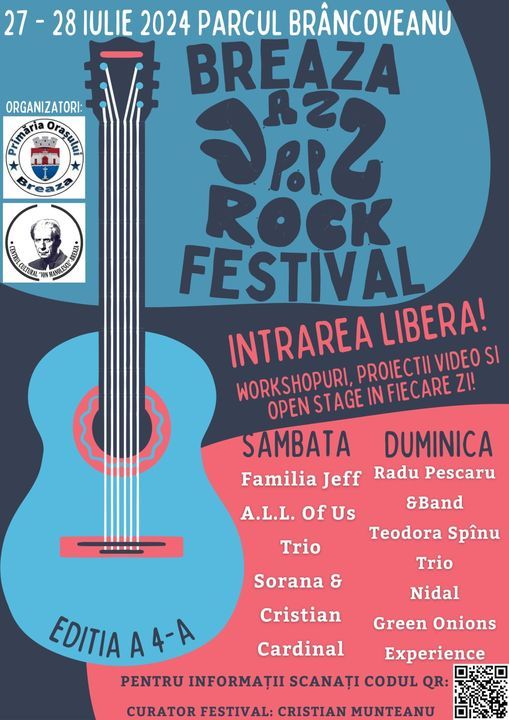 Cea de-a 4-a editie a festivalului Breaza Jazz Pop Rock va avea loc anul acesta pe data de 27 si 28 Iulie in Parcul Brancoveanu, Breaza, Prahova.