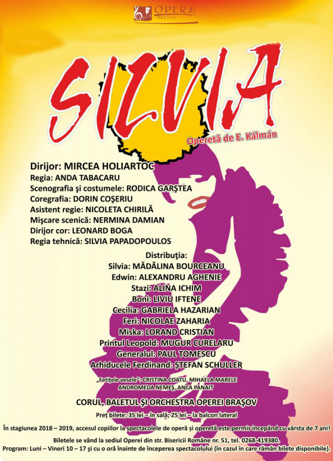 Biletele pentru spectacolul cu opereta "Silvia" de E. Kálmán se vând atât