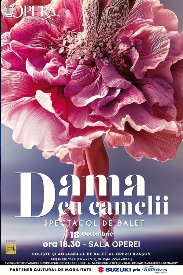 Sâmbătă, 18 octombrie 2025, de la ora 18.30, în Sala Operei Brașov, este programat spectacolul de balet „Dama cu camelii”, pe muzică de J.S. Bach, R. Schumann, C. Saint-Saëns, Fr. Chopin, Fr. Liszt, cea mai recentă premieră de balet a instituției.