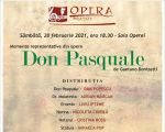 Opera Brașov vă invită sâmbătă, 20 februarie 2021, de la ora 18.30, în Sala Operei, să vă bucurați de momente reprezentative din opera bufă „Don Pasquale” de Gaetano Donizetti. Lucrarea a fost jucată pentru prima dată în istorie pe 3 ianuarie 1843, la Sala Ventadour de la Théâtre Italien din Paris și a avut un succes răsunător. „Don Pasquale” este considerată o capodoperă a genului, fiind cea mai populară dintre cele 66 de lucrări ale lui Donizetti, precum și una dintre cele mai populare opere comice italiene, celelalte fiind „Bărbierul din Sevilla” de G. Rossini și „Elixirul dragostei”, compus tot de Donizetti.