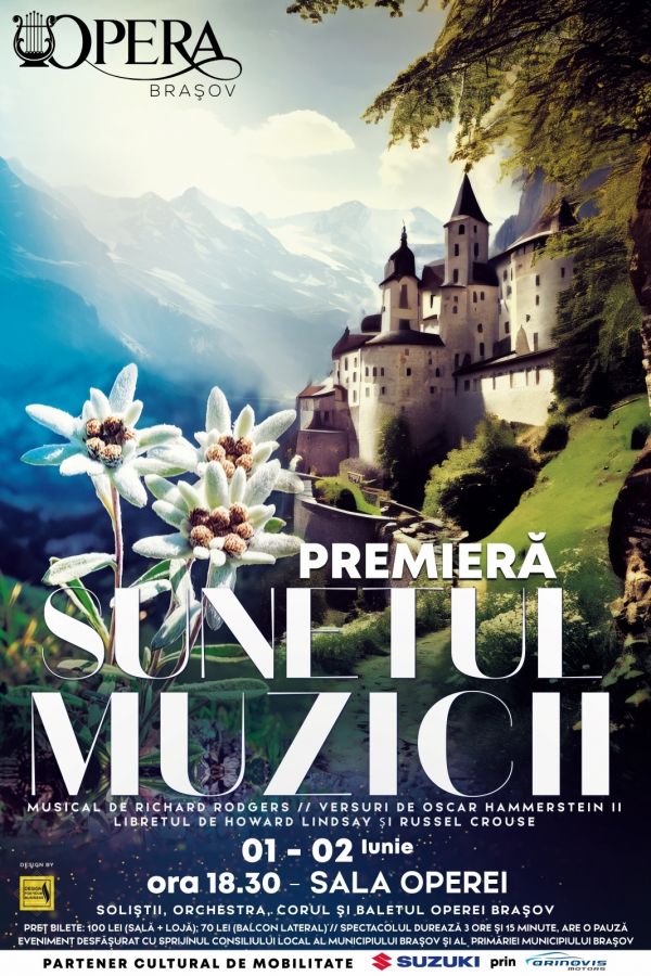 Sâmbătă și duminică, 1 și 2 iunie 2024, de la ora 18.30, în Sala Operei, este programată premiera absolută, la Brașov, a spectacolului cu celebrul musical „Sunetul muzicii” de Richard Rodgers, foarte așteptat de toată lumea! Versuri: Oscar Hammerstein II. Libretul: Howard Lindsay și Russel Crouse.