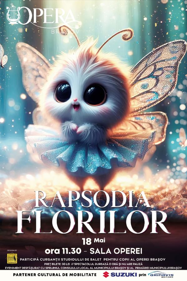 Duminică, 18 mai 2025, de la ora 11.30, în Sala Operei Brașov, micii artiști ai Studioului de Balet pentru copii al Operei Brașov – îndrumați de Iulia Coșeriu, fostă solistă de balet, vor prezenta spectacolul „Rapsodia florilor”, la finalul cursului pe care l-au urmat în acestă stagiune. „Așa cum spune și titlul, protagonistele spectacolului din acest an sunt florile. Aveam nevoie de un simbol al frumuseții și al gingășiei pentru a pune în valoare coloana sonoră a spectacolului constituită din creațiile compozitorilor români. Atât piese celebre din repertoriul românesc, dar și unele mai puțin cunoscute, pe care le-am descoperit cu mare bucurie, vor acompania micii balerini ai Studioului de Balet al Operei Brașov. Așadar, vă invit să fim împreună prin dans, frumusețe și autenticitate!”, afirmă Iulia Coșeriu.