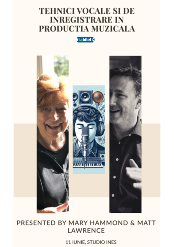 Ai ocazia unică să afli cum să faci asta - de la emisie vocală până la înregistrare și procesare - de la două figuri iconice ale industriei muzicale mondiale: Mary Hammond (vocal coach pentru artiști precum Coldplay, Adele, Dido) și Matt Lawrence (producător muzical premiat cu Grammy, care a lucrat cu nume precum Adele, Beyonce și U2).