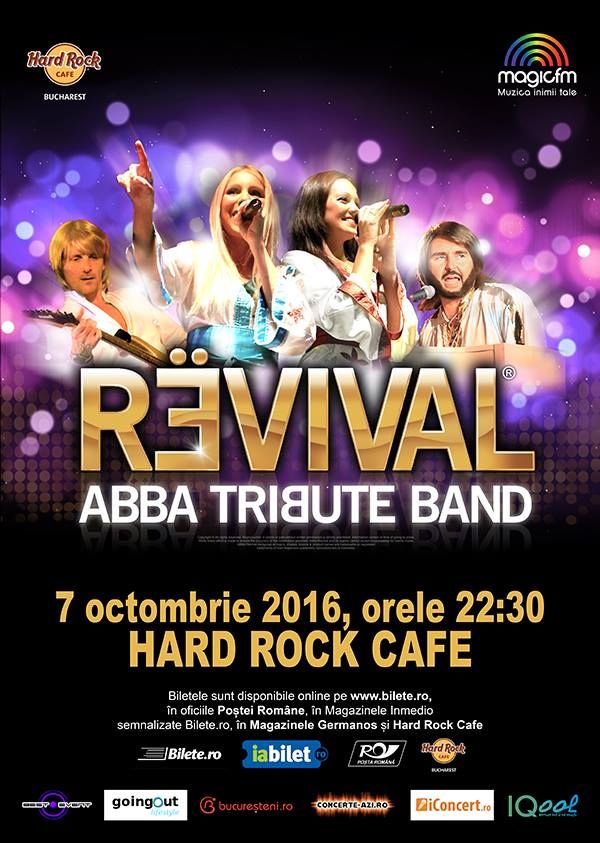 ABBA Tribute Band REVIVAL™, votata in unanimitate de Asociatia Agentilor Muzicali britanici drept cea mai buna formatie tribut Abba din Marea Britanie, concerteaza din nou la Hard Rock Cafe, in data 07 octombrie, de la orele 22:30.