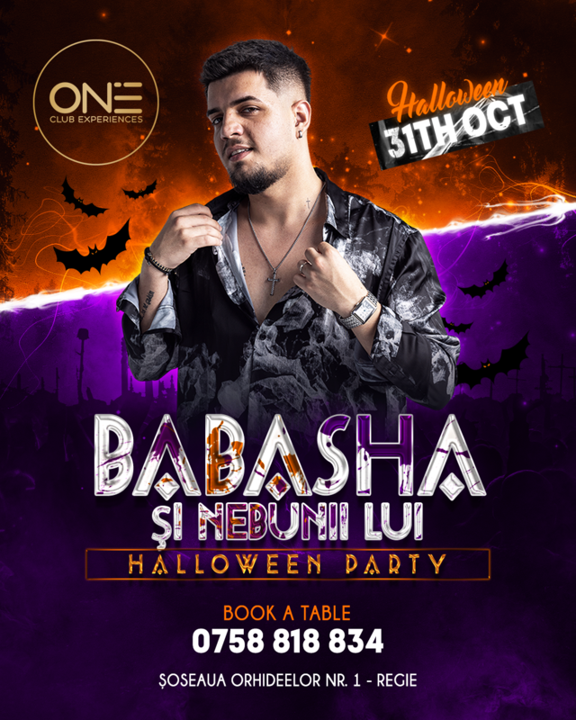 Joi, 31 Octombrie, Club ONE găzduiește evenimentul Halloween avându-i ca invitați speciali pe BABASHA & NEBUNII LUI care vor aduce multă energie și distracție pentru public.