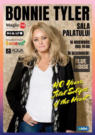 Celebra cântăreață britanică Bonnie Tyler revine în România cu un concert aniversar: 40 de ani de când a lansat un cântec intrat în legendă, „Total Eclipse of the Heart”. Vedeta galeză Bonnie Tyler va susține un concert pe 28 Februarie, la ora 19.00, la Sala Palatului din București. Una dintre cele mai bune voci ale anilor '70 – '80, cu un timbru inconfundabil, va interpreta hiturile care i-au adus o celebritate mondială, ca Holding Out for a Hero, It’s a Heartache, dar si piesa aniversată, „Total Eclipse of the Heart”, single care s-a vândut pe glob în șase milioane de exemplare și a fost certificat aur în SUA de Recording Industry Association of America (RIAA). Ca recunoaștere a serviciilor aduse muzicii, artista (pe numele său real Gaynor Sullivan, născută Hopkins) a fost distinsă cu titlul de Membru al Ordinului Imperiului britanic.