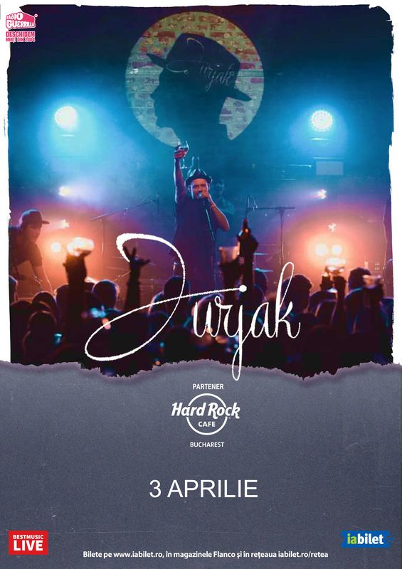 BestMusic Live Concerts te invita la Hard Rock Cafe, miercuri, 3 aprilie, incepand cu ora 21:00, la un concert extraordinar cu Jurjak! Copiii sub 7 ani au intrarea libera. La minim 4 bilete cumparate aveti discount 10%.