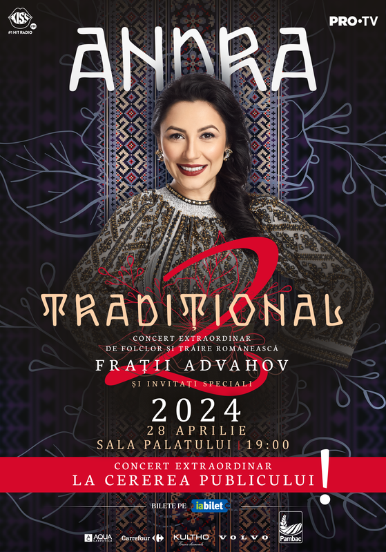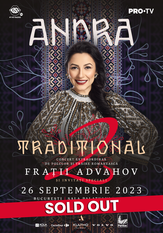 Tradițional 2, cel mai așteptat spectacol românesc, pe 28 aprilie, la Sala Palatului. Andra revine cu superproducția artistică bazată pe muzică tradițională românească, după succesul fulminant al „Tradițional”, tot cu susținerea orchestrei Frațiilor Advahov. Aproape 100.000 de spectatori au văzut una dintre cele 15 reprezentații live, toate sold-out, susținute atât în România, cât și în Italia și în Marea Britanie. În 2023, publicul se va putea bucura de o nouă versiune a conceptului, cu piese noi și invitați speciali care vor oferi o experiență completă.