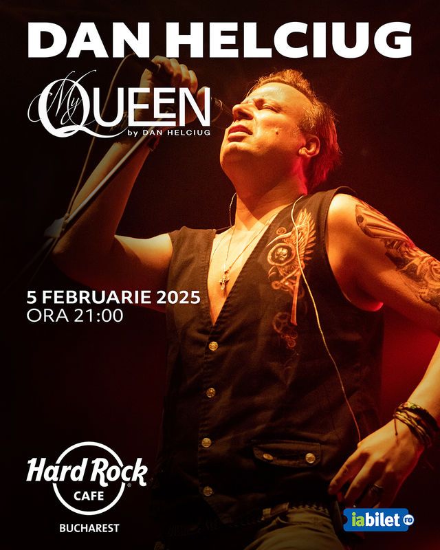Pe 5 februarie, de la orele 21.00, vei avea parte de un concert tribut Queen electrizant la Hard Rock Cafe. Vino să te bucuri de un regal de hituri nemuritoare, în interpretarea lui Dan Helciug și a trupei sale: "Don’t stop me know”, “I want to break free”, “The show must go on”, “Somebody to love” și multe alte piese care spun povestea unei legende.
