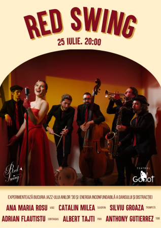 Pe data de 25 iulie te invităm să cântăm dar și să dansăm “Swing” pe cele mai cunoscute piese ale tuturor timpurilor. RedSwing îmbrățișează bucuria jazz-ului anilor ’30 și energia inconfundabilă a dansului și distracției.