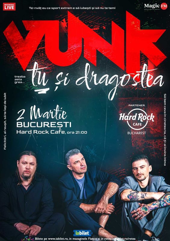 Va invitam la Hard Rock Cafe, miercuri, 29 octombrie, incepand cu ora 21:00, la un concert cu Vunk! In deschidere va canta Larisa XO.