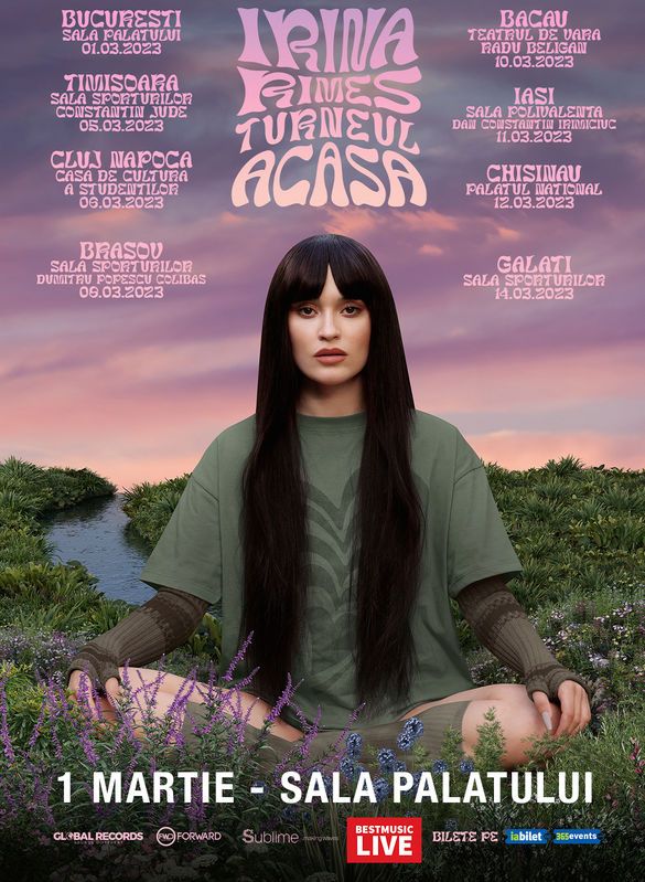 Irina Rimes canta pe 1 martie la Sala Palatului din Bucuresti in cadrul unui eveniment BestMusic Live & Global Records. Concertul face parte din turneul ACASĂ. Turneul ACASĂ, va incepe pe 1 martie 2023, cu concertul de la Sala Palatului si se continua in Timisoara, Cluj, Brasov, Bacau, Iasi, Galati si Chisinau.