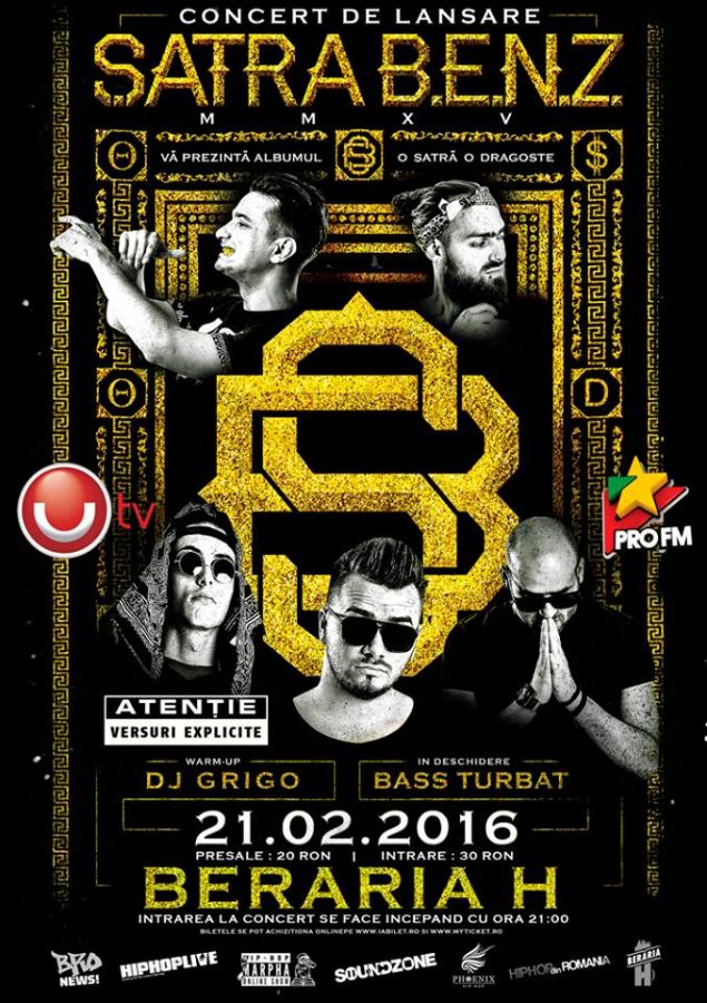 Ce crezi ca vei face pe 21 februarie 2016 la orele 21:00? Habar n-ai nu? E bine afla ca o sa fii prezent in Beraria H la concerul de lansare al albumului O.S.O.D. de la rasfatatii hip-hop-ului autohton: Șatra B.E.N.Z. Au si invitati pe baietii de la Bass Turbat & Flvcko in deschidere , au si DJ in warm-up ( DJ Grigo ) si au mai ales chef sa distruga sala, sa eviscereze boxele si sa schimbe pentru totdeauna modul in care arata se aude si desfasoara un concert de hip-hop in Romania! Pacat ca sunt manelisti!