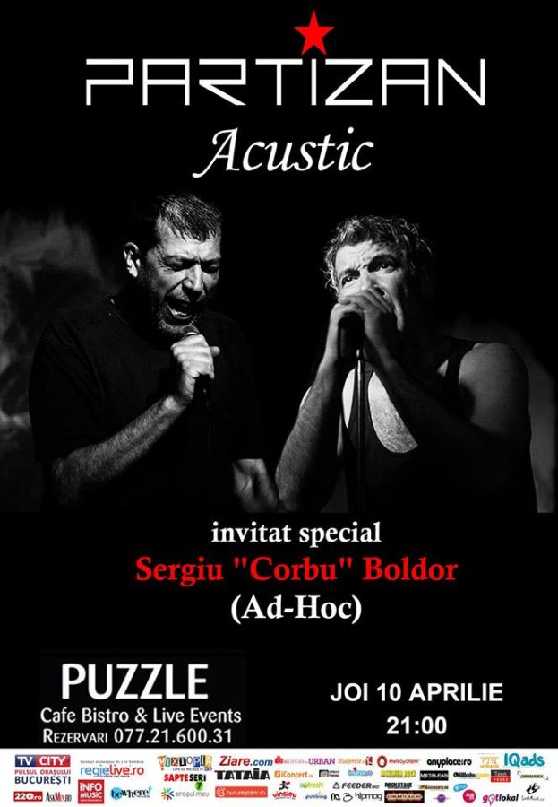 Partizani din toate sectoarele Bucurestiului: uniti-va! Pe data de 10 aprilie, incepand cu ora 21:00, Artanu' si Suedezu' se prezinta in Clubul Puzzle si va asteapta la concertul PARTIZAN Acustic!