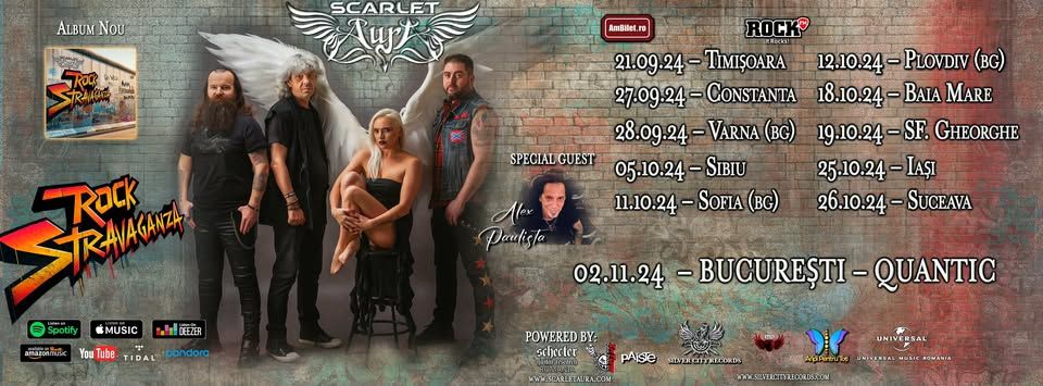 După un turneu spectaculos care a electrizat orașe din România și Bulgaria, Scarlet Aura, supranumiți „îngerii rockului românesc”, se întorc în București pentru a încheia turneul de lansare al noului lor album, „Rock-Stravaganza”. Pe data de 02 Noiembrie 2024, la Club Quantiq, trupa vă pregătește o seară memorabilă, plină de energie și muzică rock de cea mai bună calitate.