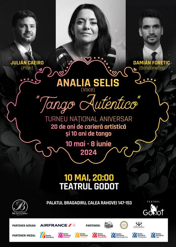 Între 10 mai și 8 iunie 2024, ANALIA SELIS și invitații săi din Argentina prezintă publicului român turneul național „TANGO AUTÉNTICO”.