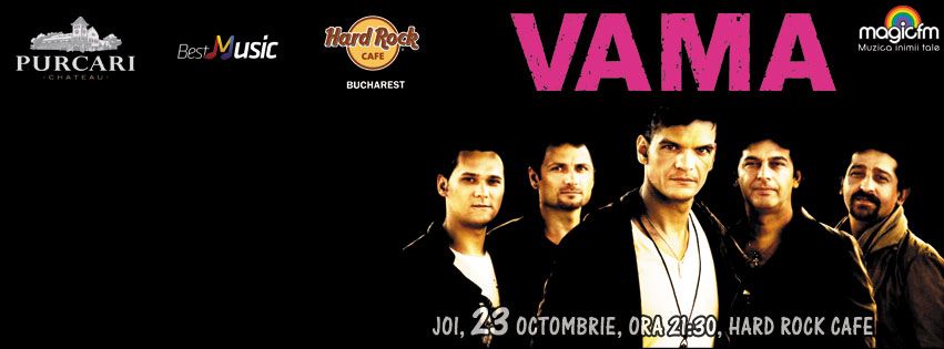 Joi, 23 octombrie 2014, de la ora 21:30, BestMusic te invita la Hard Rock Cafe la un nou concert perfect cu trupa VAMA, una dintre cele mai energice si iubite trupe live de pop-rock din Romania!