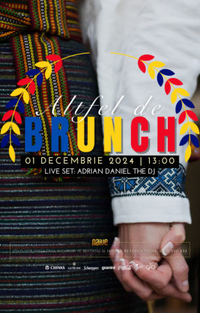 Pe 1 Decembrie, de Ziua Națională a României, Naive te invită să sărbătorești cu un "Altfel de Brunch", o experiență culinară deosebită ce pune în valoare gusturile autentice românești reinterpretate cu creativitate. Începem de la ora 13:00 pe terasa panoramică de la etajul 6 al Magazinului București, cu o atmosferă vibrantă acompaniată de Adrian Daniel the DJ.