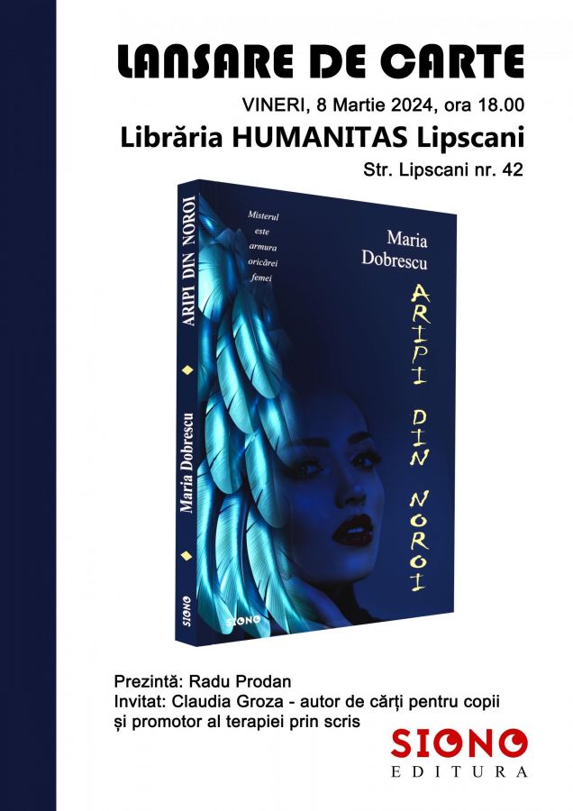 După lansare, romanul "Aripi din Noroi" va fi găsit în rețelele de librării din întraga țară, precum și în Librăria SIONO.
