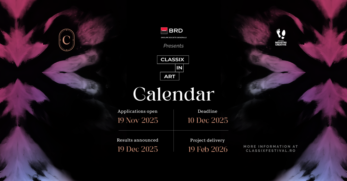 Asociația Industrii Creative, organizator al Classix Festival, a anunțat lansarea celei de-a patra ediții a programului de burse de creație Classix in Art, cu sprijinul partenerului principal, BRD Groupe Société Générale. Programul consolidează direcția festivalului de a sprijini artiștii emergenți, într-un demers prin care Classix încurajează interdisciplinaritatea, mobilitatea artistică și formarea unei noi generații de artiști.