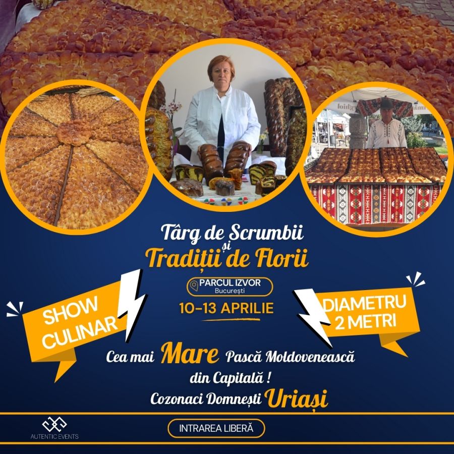 CEA MAI MARE PASCĂ MOLDOVENEASCĂ DIN CAPITALĂ vă așteaptă weekendul acesta în Parcul Izvor la TÂRGUL DE SCRUMBII Și TRADIȚII DE FLORII, locul unde tradiția se transformă în spectacol culinar!