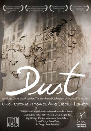 "Dust" a reprezentat proiectul final pentru obținerea diplomei Master of Fine Arts în cadrul Puppet Arts Program la Universitatea din Connecticut și a fost prezentat în cadrul stagiunii 2016-2017 a Connecticut Repertory Theatre. Accesul la eveniment se va face începând cu ora 19:00. Spectacolul va începe la ora 20:00.
