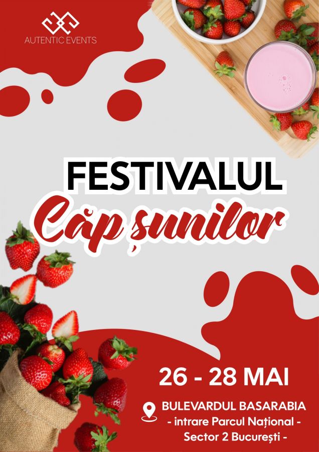 Vara mai are doar un pas și ajunge la noi, iar odată cu ea vin cele mai așteptate și parfumate fructe – căpșunile. Dacă doriţi să aflaţi aproape totul despre căpșuni vă aşteptăm weekendul acesta la FESTIVALUL CĂPŞUNILOR ce îşi deschide porţile începând de vineri, 26 mai, şi până duminică, 28 mai, pe Bulevardul Basarabia din Sectorul 2, la intrarea în Parcul Naţional.