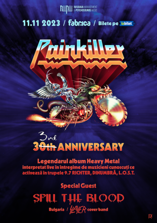 "Muzicieni ce activeaza in formatii cunoscute fanilor si-au unit fortele pentru a aduce un tribut probabil celui mai bun album JUDAS PRIEST - PAINKILLER, la aniversarea a 33 de ani. Pentru a marca acest eveniment, albumul PAINKILLER va fi redat integral, intr-un show special. Special guest : SPILL THE BLOOD - SLAYER cover band (Bulgaria).