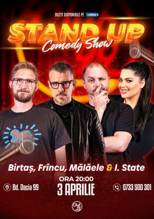 Vă așteptăm la o seară de stand-up comedy alături de Birtaș, Frîncu, Mălăele & Ioana State