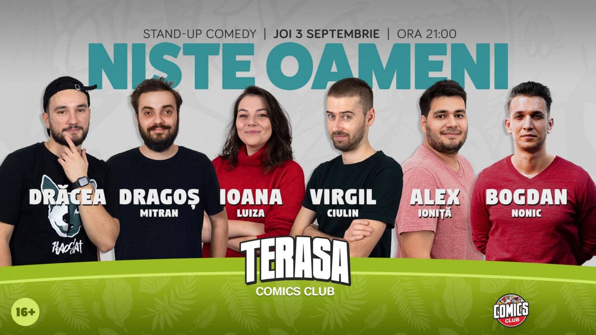 Ce?? Stand-up comedy cu Niște Oameni, adică: Ioana Luiza,Alex Ioniță, Bogzi, Sergiu Mirică și Virgil Ciulin? Da, joi de la ora 20:00.