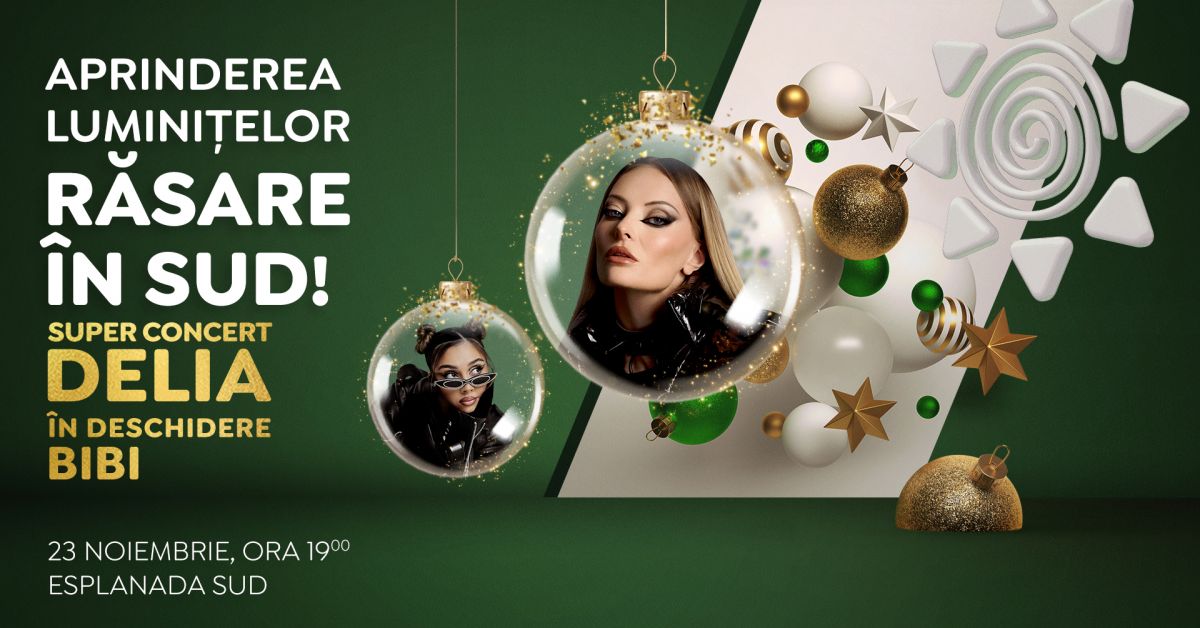 Joi, pe 23 noiembrie, Centrul Comercial SUN PLAZA din București dă startul sezonului festiv de iarnă cu ceremonia aprinderii luminilor de Crăciun, eveniment ce va fi marcat printr-un concert extraordinar al artistelor Delia și Bibi, începând cu ora 19:00.