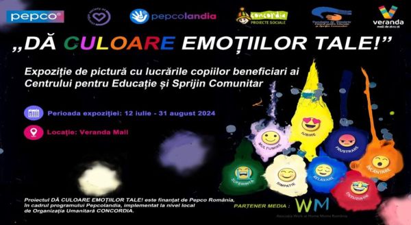 Expoziţie de pictură cu lucrările copiilor beneficiari ai Centrului pentru Educaţie şi Sprijin Comunitar realizate în cadrul proiectului "Dă culoare emoţiilor tale!".