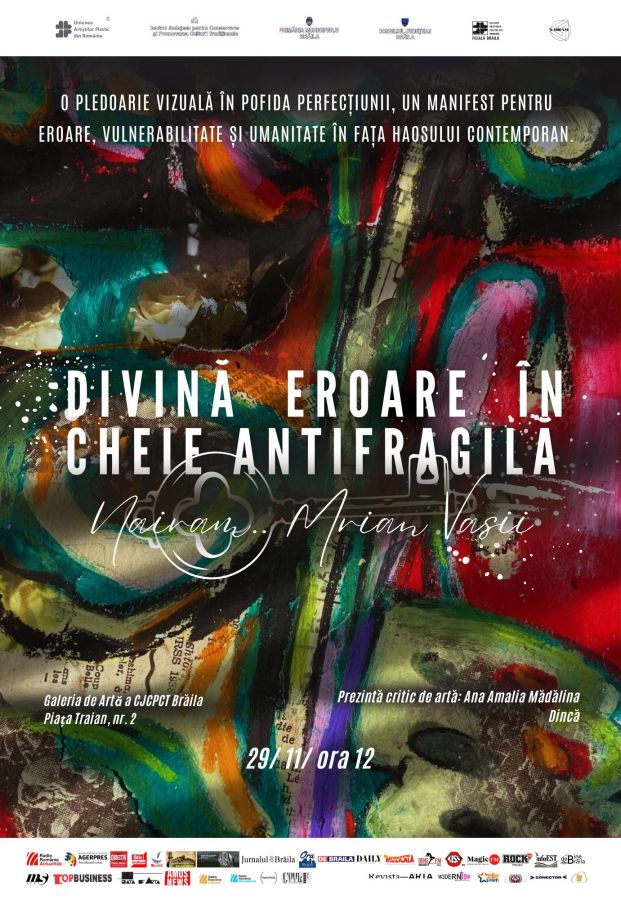 Organizat de UAP România – filiala Brăila, ca parte din noua structura “UAPR #70 Artă pentru oameni, oameni pentru artă”, în parteneriat cu Centrul de Creație, evenimentul marchează o etapă definitorie pentru cariera artistului și aduce în prim-plan o pledoarie vizuală pentru eroare, imperfecțiune și autenticitate.