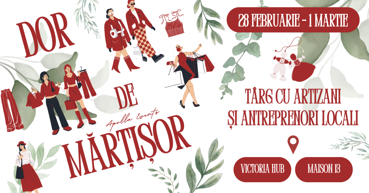 Pe 28 FEBRUARIE – 1 MARTIE, te invităm la o ediție specială de poveste: Dor de Mărțișor un eveniment marca Apolla Events, dedicat primăverii, tradițiilor reinterpretate și lucrurilor create cu suflet. Anul acesta facem ceva cu adevărat spectaculos: Dor de Mărțișor va avea loc în două locații diferite, în același timp, aducând magia mărțișorului în două colțuri ale Bucureștiului, simultan. Două spații, aceeași energie, aceeași poveste spusă prin creații autentice și oameni frumoși: Victoria Hub și Maison 13.