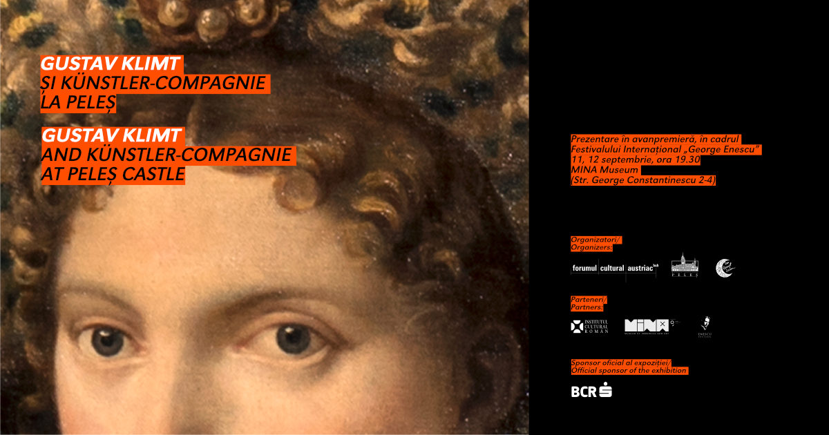 Expoziția „Gustav Klimt si Künstler-Compagnie la Peleș”, realizată la inițiativa Forumului Cultural Austriac, este prezentată în avanpremieră, doar pentru două zile, la MINA – Muzeul artei noi imersive din București. Curatoriată de cercet. dr. Antonela Corban, expoziția aduce mai aproape de amatorii de artă din România lucrările fixe pictate la Castelul Peleș de cel care avea să devină celebrul Gustav Klimt și colaboratorii săi, Ernst Klimt și Franz Matsch. Expoziția este accesibilă publicului concertului „Klimt meets Bösendorfer – VER SACRUM by Alexandra Silocea”, pe 11 și 12 septembrie, de la ora 19.30, la Muzeul MINA (Str. George Constantinescu 2-4), în cadrul Festivalului Internațional „George Enescu”. Cu această ocazie vor putea fi vizionate fragmente din viitorul video-documentar al expoziției „Gustav Klimt si Künstler-Compagnie la Peleș”, realizat de regizoarea Carmen Lidia Vidu și de artista video, Sabina Costinel, special pentru această expoziție. Expoziția va fi vernisată oficial în luna octombrie, la Muzeul Național Peleș, în luna octombrie, după care va pleca într-un turneu național și internațional.