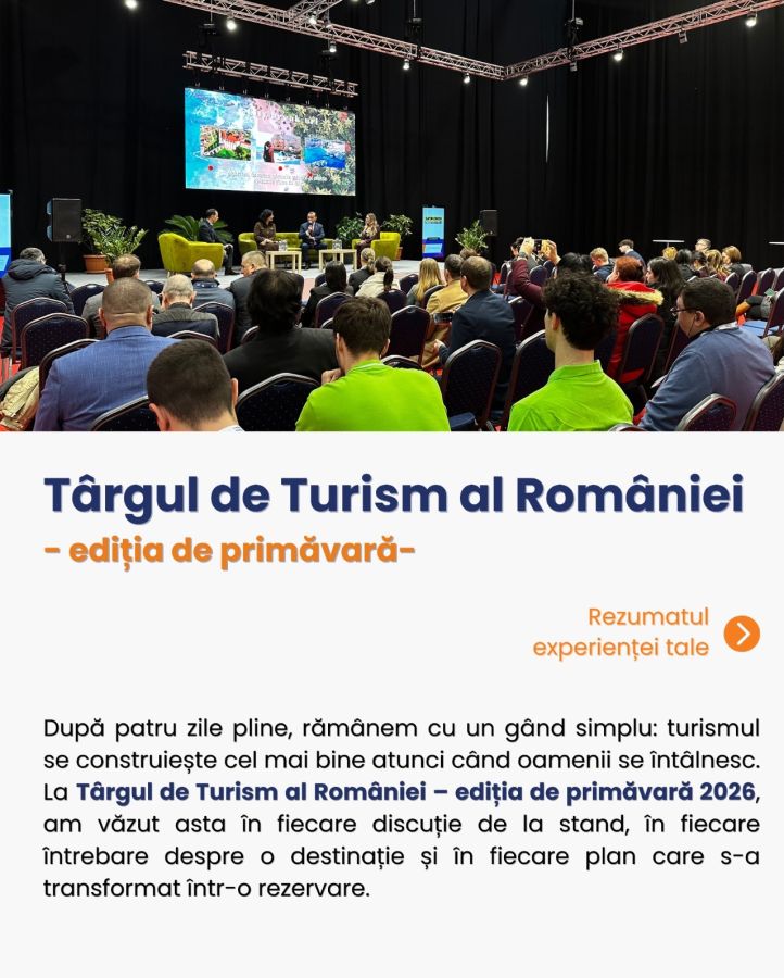 Ediția de primăvară a Târgului de Turism al României a arătat cât de vie și conectată este această industrie. Standurile spectaculoase, discuțiile constante și interesul real pentru colaborare ne-au confirmat că evenimentul este un spațiu în care lucrurile se întâmplă cu adevărat. Le mulțumim expozanților și partenerilor care au venit cu idei proaspete, concepte relevante și oferte atractive, dar și vizitatorilor care, prin prezența și interesul lor, au creat atmosfera acestei ediții. Privim cu entuziasm către ediția de toamnă și invităm companiile din România și din străinătate să ni se alăture pentru a transforma promovarea și colaborarea în proiecte concrete pentru viitorul turismului”, transmite Oana Netbai, Director Comercial ROMEXPO.
