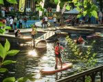 Cu plecare de la Debarcaderul proaspăt amenajat, pe apă vor avea loc: plimbări cu canotcile Rowmania - PATZAIKIN și ambarcațiunile din flotila Dâmbovița Apă Dulce, SUP-uri și caiace, și proiecții pe luciul apei.