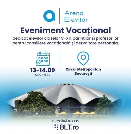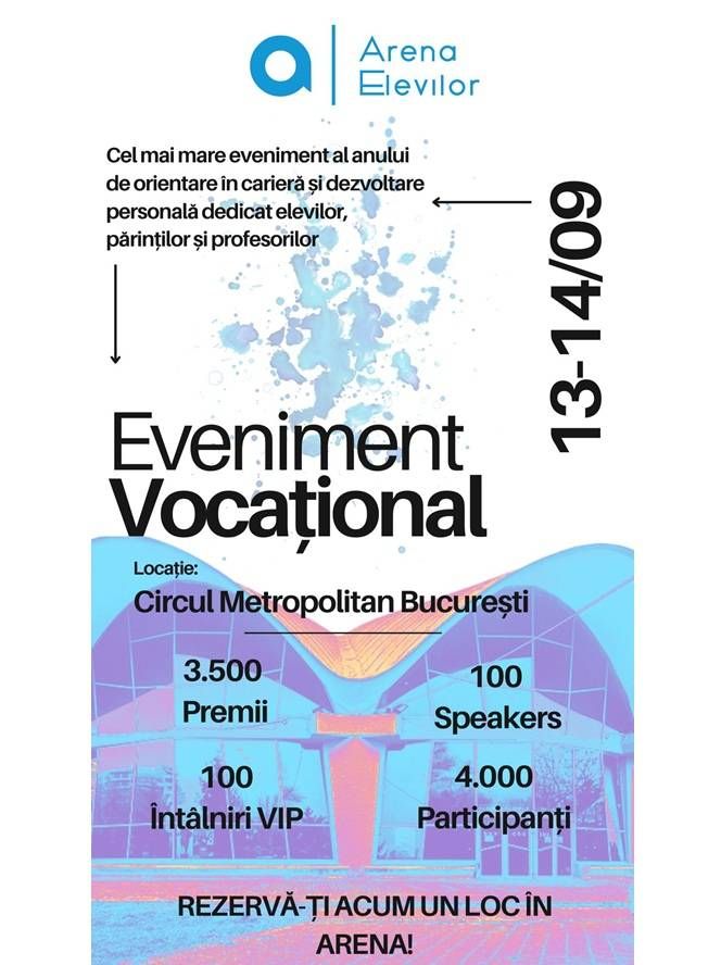 La Arena Elevilor 2025, acolo unde ideile prind glas, iar elevii prind curaj. Cel mai amplu eveniment vocațional din Europa dedicat elevilor, părinților și cadrelor didactice revine în forță, într-un spațiu spectaculos: Circul Metropolitan București, pe 13 și 14 septembrie 2025.