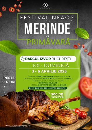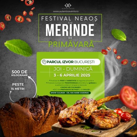 Dacă ești iubitor de bucate autentice și arome de primăvară, nu trebuie să ratezi Festivalul Neaoș cu Merinde de Primăvară! În perioada 3-6 aprilie, Parcul Izvor din București devine locul unde tradiția se întâlnește cu savoarea, iar preparatele gătite pe loc vor transforma fiecare vizitator într-un gurmand fericit!