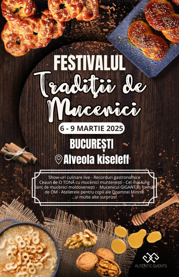 Pregătiți-vă pentru un festival de neuitat! Cu entuziasm și multă creativitate, echipa Autentic Events dă startul unui nou capitol al tradițiilor românești. Vă invităm, așadar, la Festivalul Tradiții de Mucenici, eveniment devenit deja un reper în peisajul cultural bucureștean! Ne vedem în Sectorul 1, în Alveola Kiseleff, pe partea dreaptă în sensul de mers spre Piața Victoriei, între 6 și 9 martie 2025, de joi până duminică!