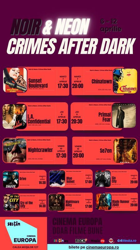 Săptămâna asta intrăm în filme care miros a ploaie pe asfalt, a fum de țigară și a decizii proaste luate prea târziu. De la noir-ul clasic, alb-negru și periculos, până la neonul rece al orașului modern - Noir & Neon aduce povești despre obsesii, vină, putere și oameni care sigur au spus la un moment dat: „o să fie ok”… și n-a fost.