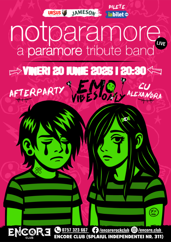Imediat dupa concert, seara continua cu deja consacratul party Emo Vibes Only, alaturi de Alexandra si un DJ set dedicat celor mai emblematice piese din scena Emo, Pop-Punk si Alternative.